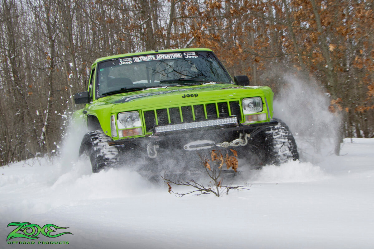 We had a great weekend up in northern Michigan for the 8th Annual SnoFari event. With plenty of snow this winter and frigid temps, Zone hit the trails in Project MJ. The event which is hosted by the Soldiers of Fortune Offroad Club (SoFo) gathers 80 rigs from stock to fully built for 2 days and nights out wheeling in the trails around West Branch, MI. The cold weather and deep snow caused problems for many with numerous rigs falling victim to blown transmissions, axles, u-joints, dead batteries, and other temperature related failures. Even the Zone MJ broke a front u-joint while breaking trail on Saturday. A quick replacement and we were back on the trail tearing it up again.