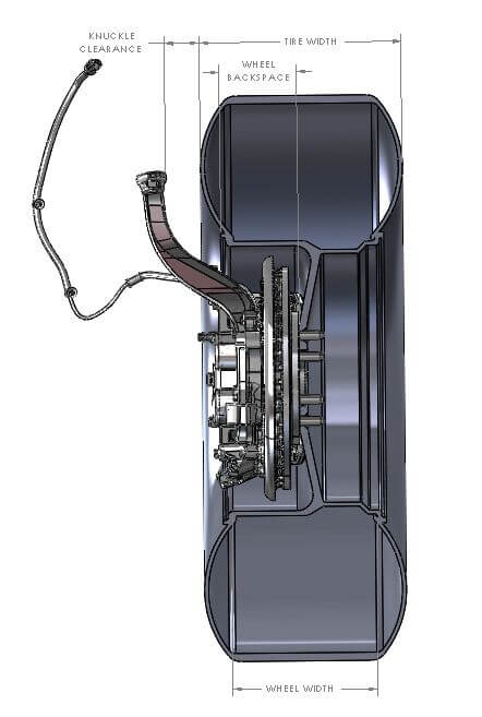 Too little backspacing will put the wheel outside of the wheel well really far. This is great for suspension component clearance, but really bad for fender clearances. When the tire sticks out it is likely to rub on the bumper and backside of the front fender while the wheel is turned. Sometimes some creative trimming will fix this problem, but most people do not like to trim excessively on brand new trucks. The other problem with a wheel that sticks out really far is it increases tire scrub. This can cause issues with traction control systems as well as increase the wear on factory components.