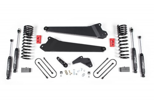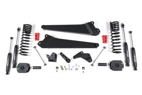 Engineered to match the 2014 RAM 2500 4WD truck strength, these systems upgrade the factory front radius arms & offer great ride quality & allow 37″ tires.